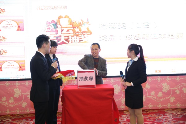 年会同样让人期待的还有抽奖环节,会场时时爆发出来的尖叫声、欢呼声预示着新年的祝福与幸运。本次抽奖环节共设置了五个奖项,包括了联想电脑、iPad mini等大奖在内的丰厚奖品,中奖率高、奖品丰厚,让人十分期待。每当抽奖嘉宾和领导走向抽奖箱之时,在场的员工都想触摸他们的幸运之手,期待新年礼物的来临。随着各大奖项的一一揭晓,现场热烈的掌声此起彼伏,气氛十分火爆。