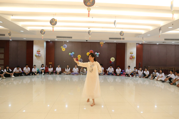 茶道分享环节结束之后是欢快有趣的生命管理沙龙。在沙龙开始前,杨总裁亲自上场献上一段优雅唯美的独舞《人间西湖》,让大家更好地感受到生命管理沙龙的魅力。杨总裁优美灵动的舞姿引发一阵阵掌声,现场气氛热烈。