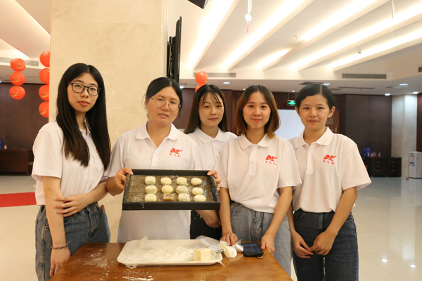 工作人员将提前准备好的面团、馅料分发给大家,在讲解制作步骤后全场就热火朝天的制作起来。大家戴起手套,一边聊着家常,一边揉面团、包馅、装模具……每个步骤都有条不紊、分工协作、气氛欢乐融洽。看着自己亲手制作的月饼,大家别提有多开心了。月是故乡明,月饼表浓情!一块月饼一片情,月饼DIY活动不仅让大家享受到亲自动手的快乐,又传承了中秋的团圆文化,增进同事之间的情谊,更加深刻地传递了中国传统文化的寓意,寄托对美好生活的热爱。