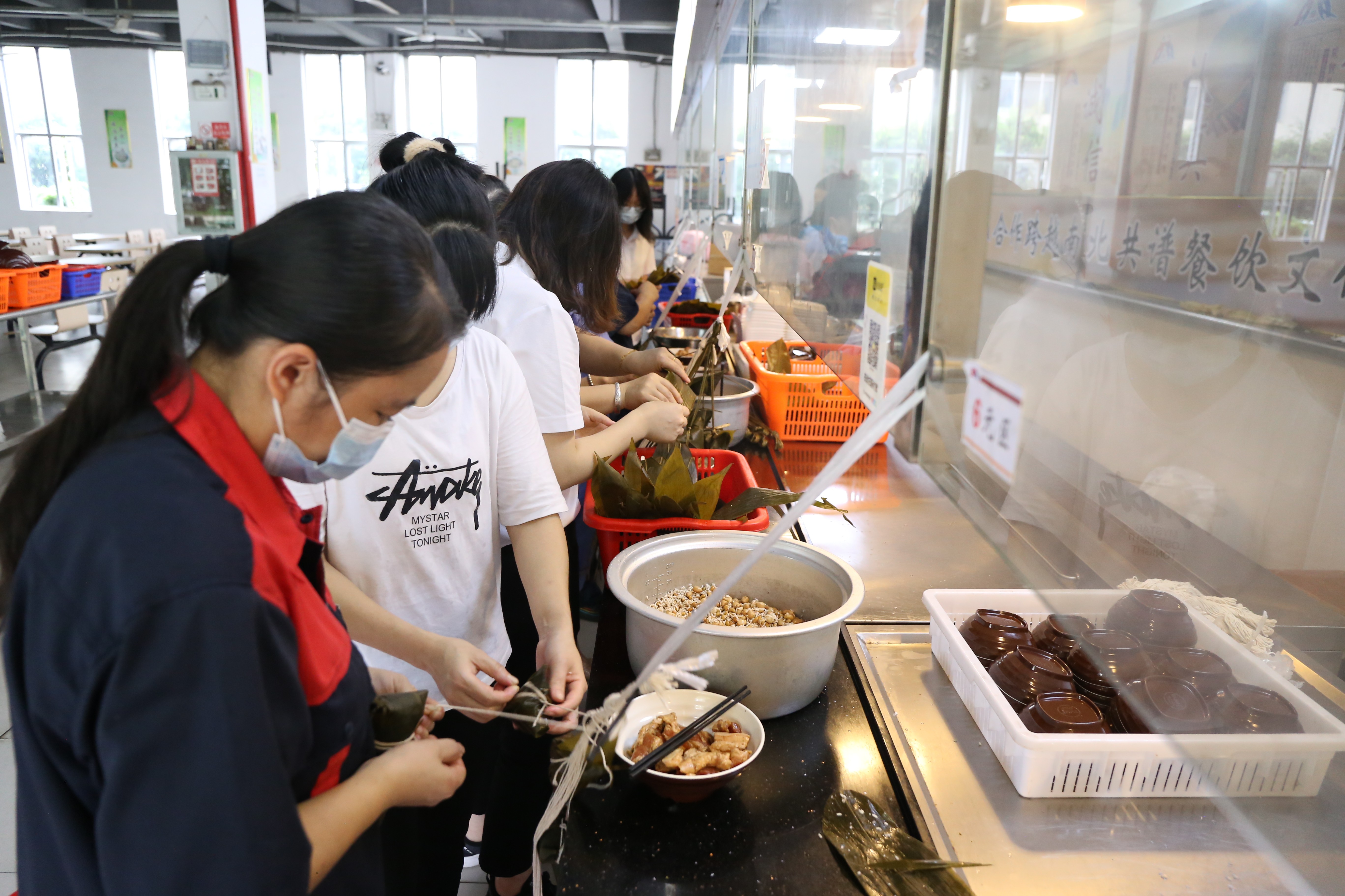 在饭堂一起包粽子