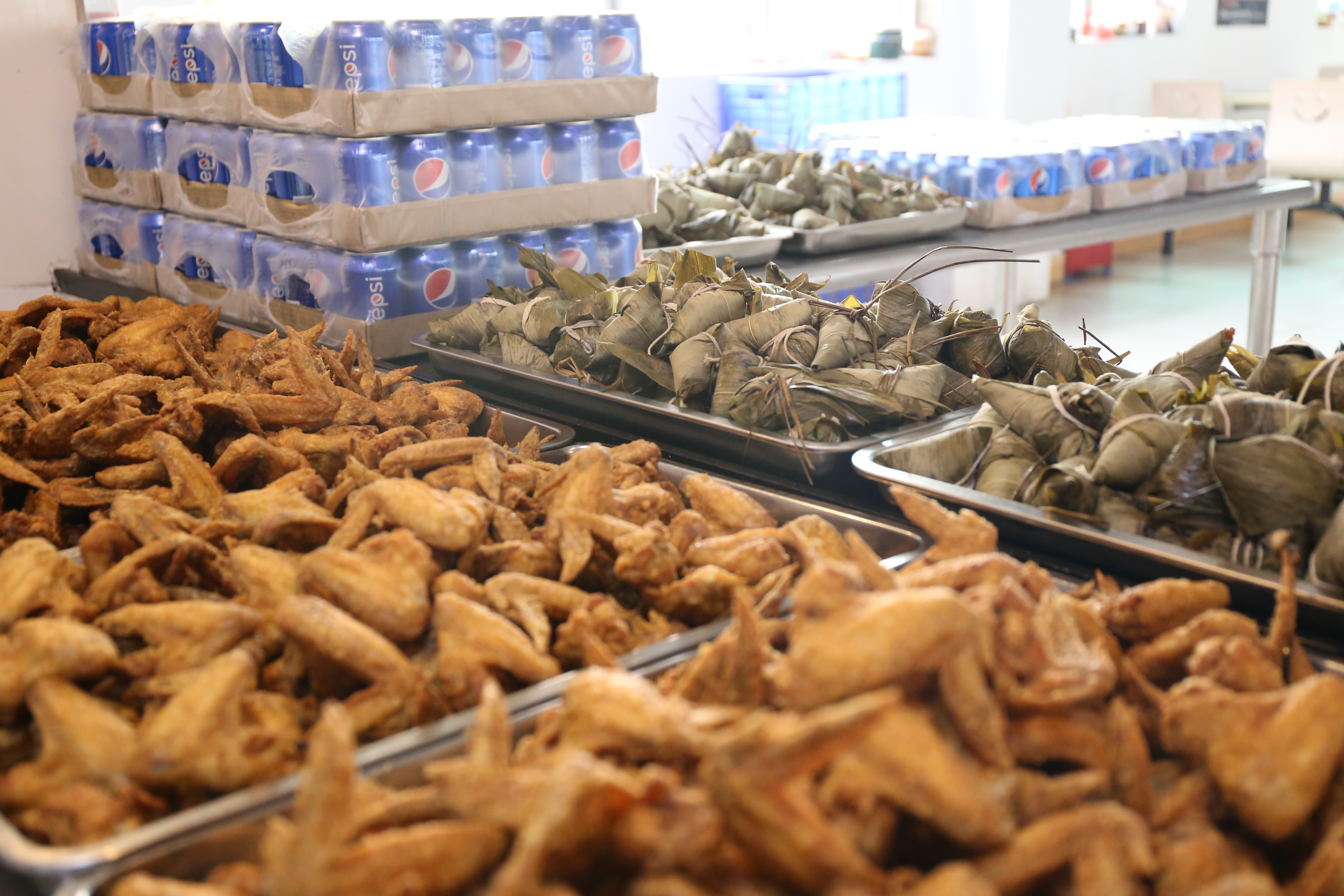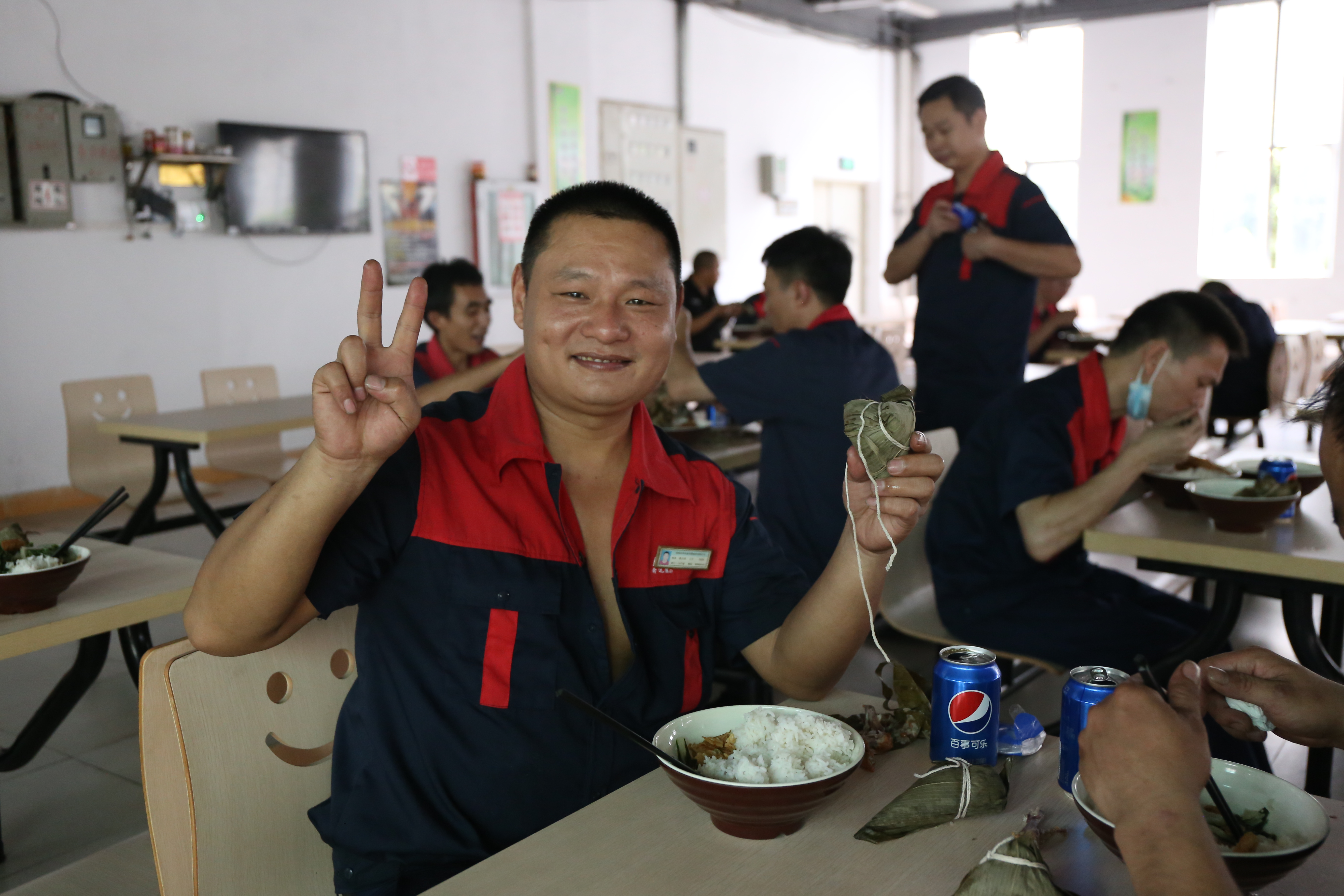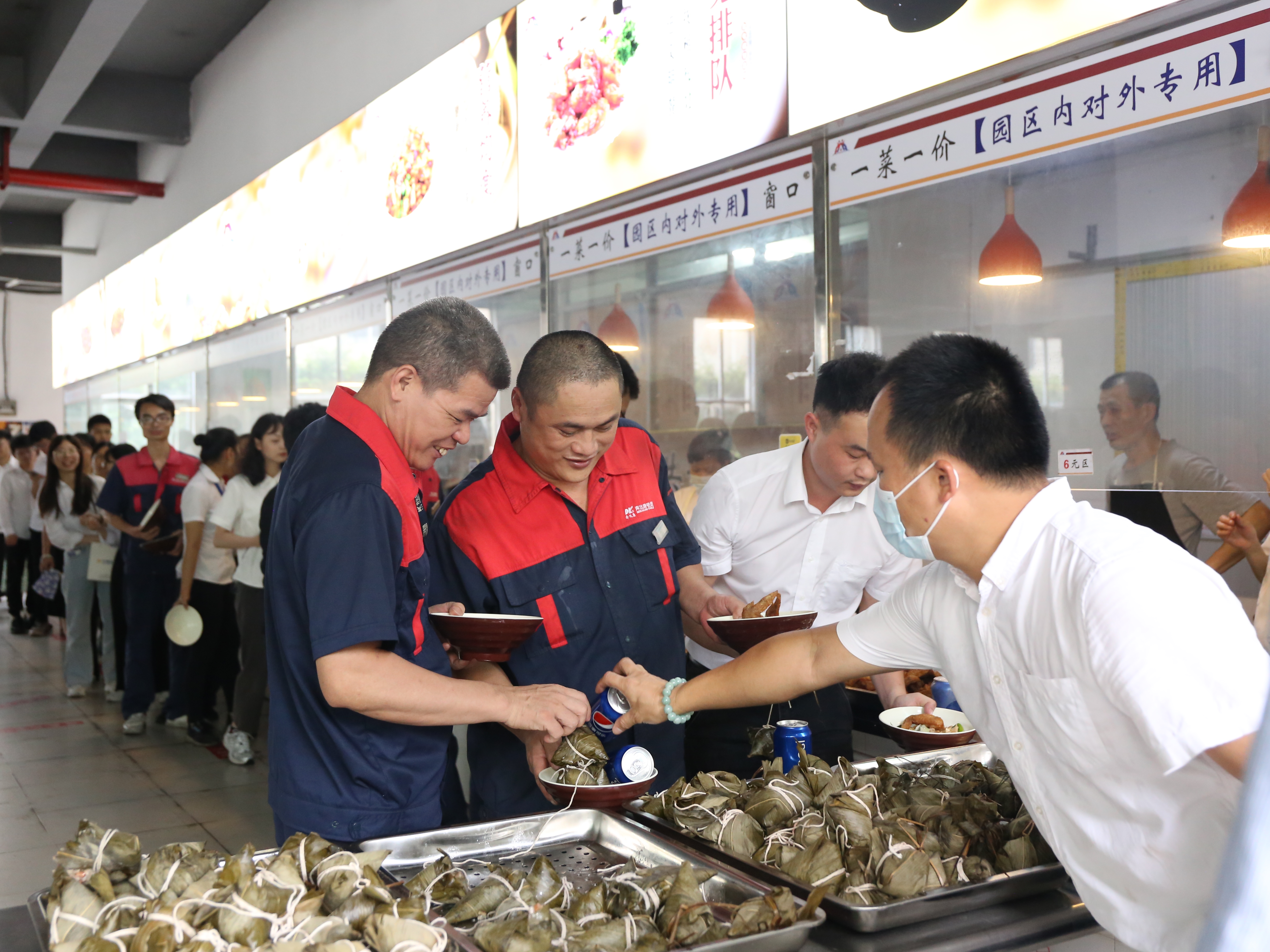 端午节除了发放的粽子外,饭堂还精心准备了饮料和特色美食为员工加餐。