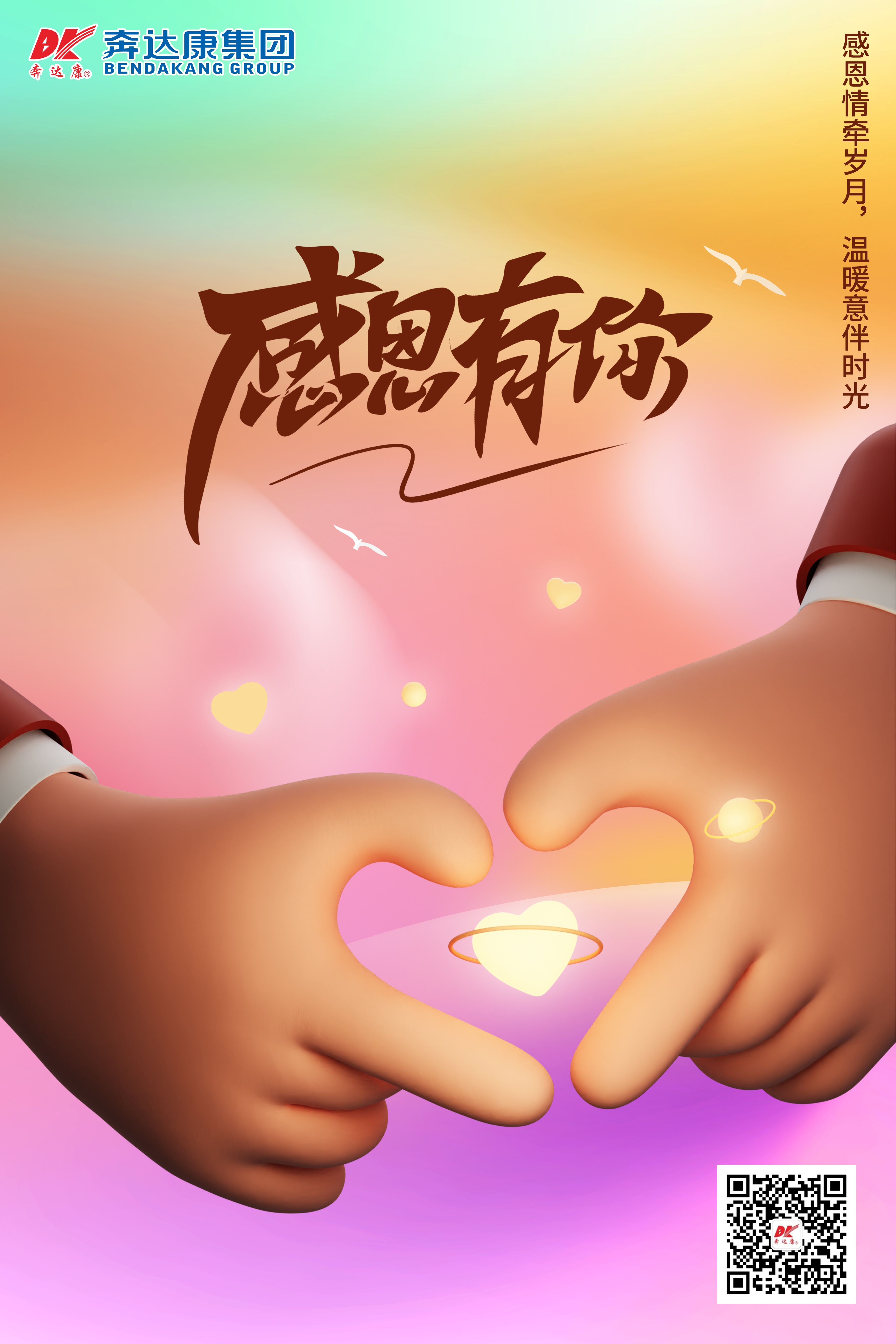 秋意渐浓,感恩之心,温暖如初。 在这个落叶纷飞的季节, 我们迎来了又一个感恩节。 感谢每一个晨光熹微中的员工, 大家一同奋斗,一同成长。 感谢广大客户对奔达康集团的信任, 你们的默默支持如同冬日暖阳, 穿透寒风,照亮了我们的前行之路。 未来的日子里,让我们携手共进, 继续书写属于我们的辉煌篇章!