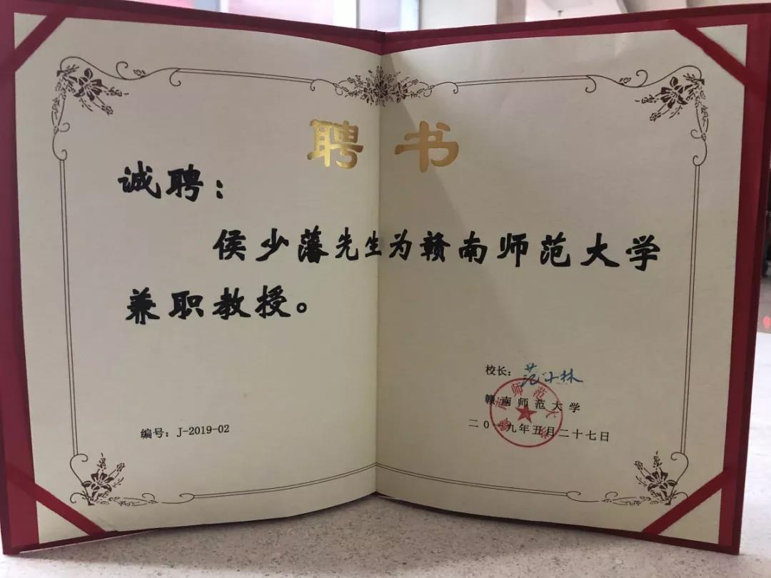 此次侯少藩董事长受聘赣南师范大学兼职教授象征着双方情谊、校企合作的进一步加深,希望这份师生之情、校企之谊永葆青春、绵延长久,同时也衷心的祝愿赣南师范大学的学子们能够靓丽的活出自己的精彩人生。
