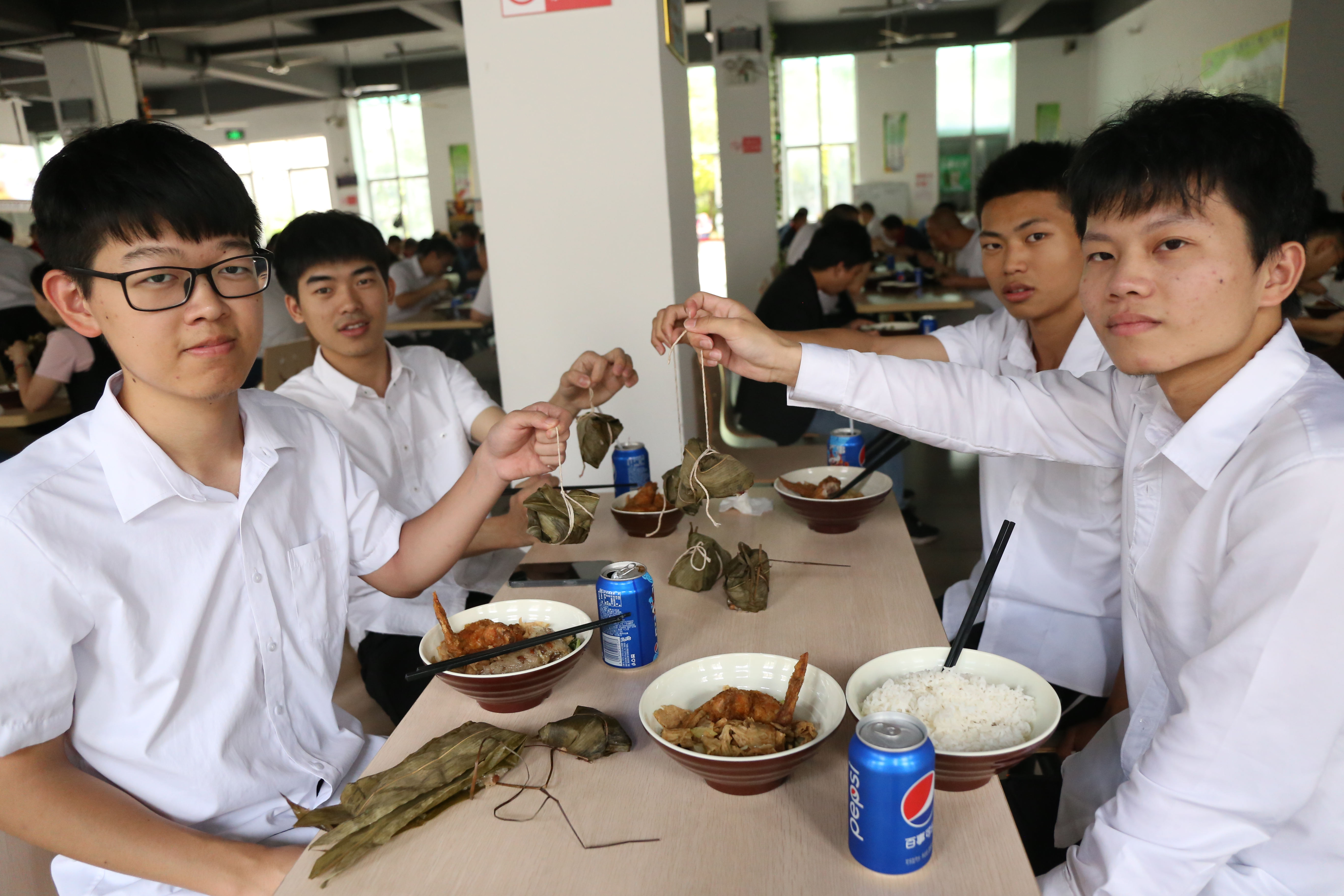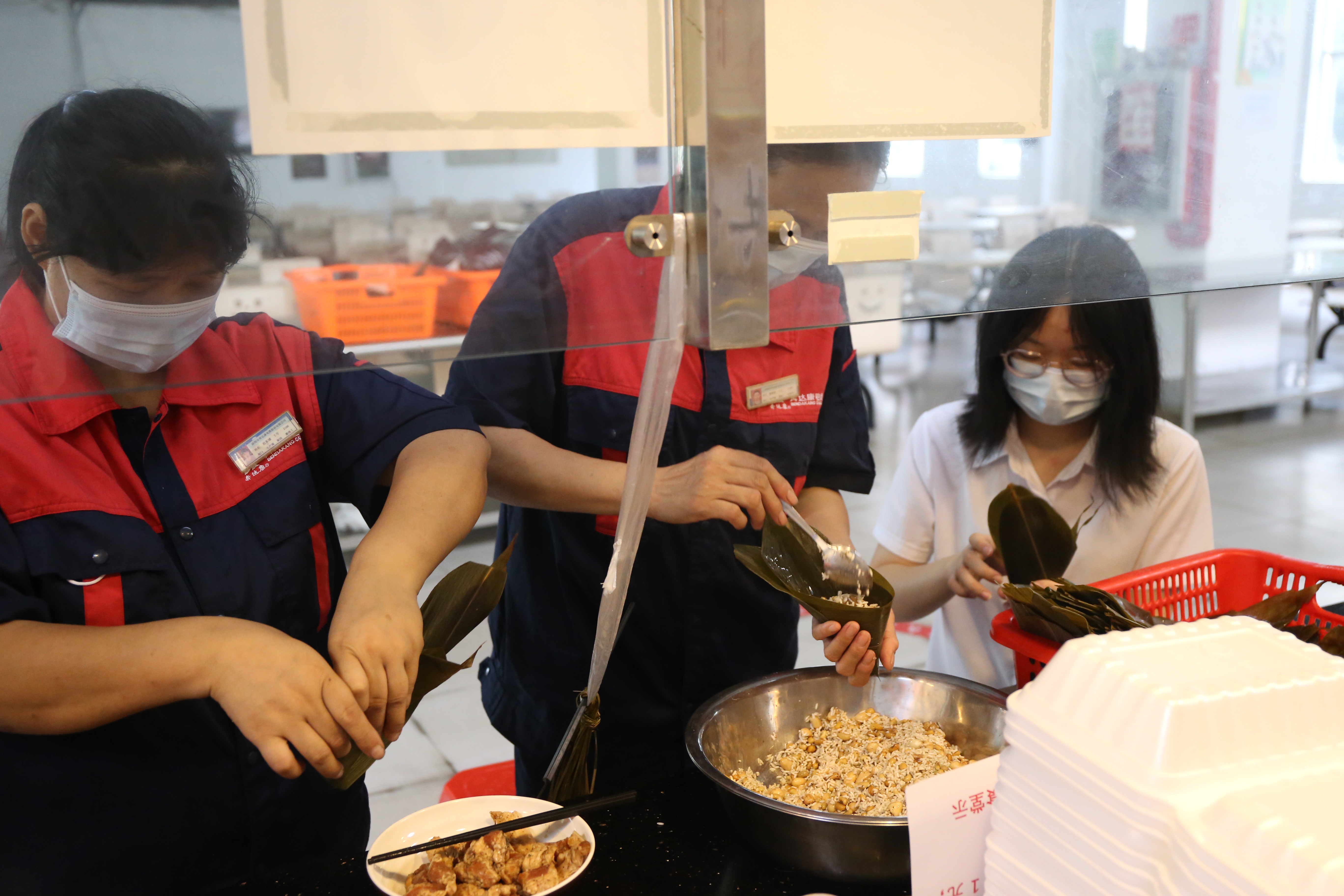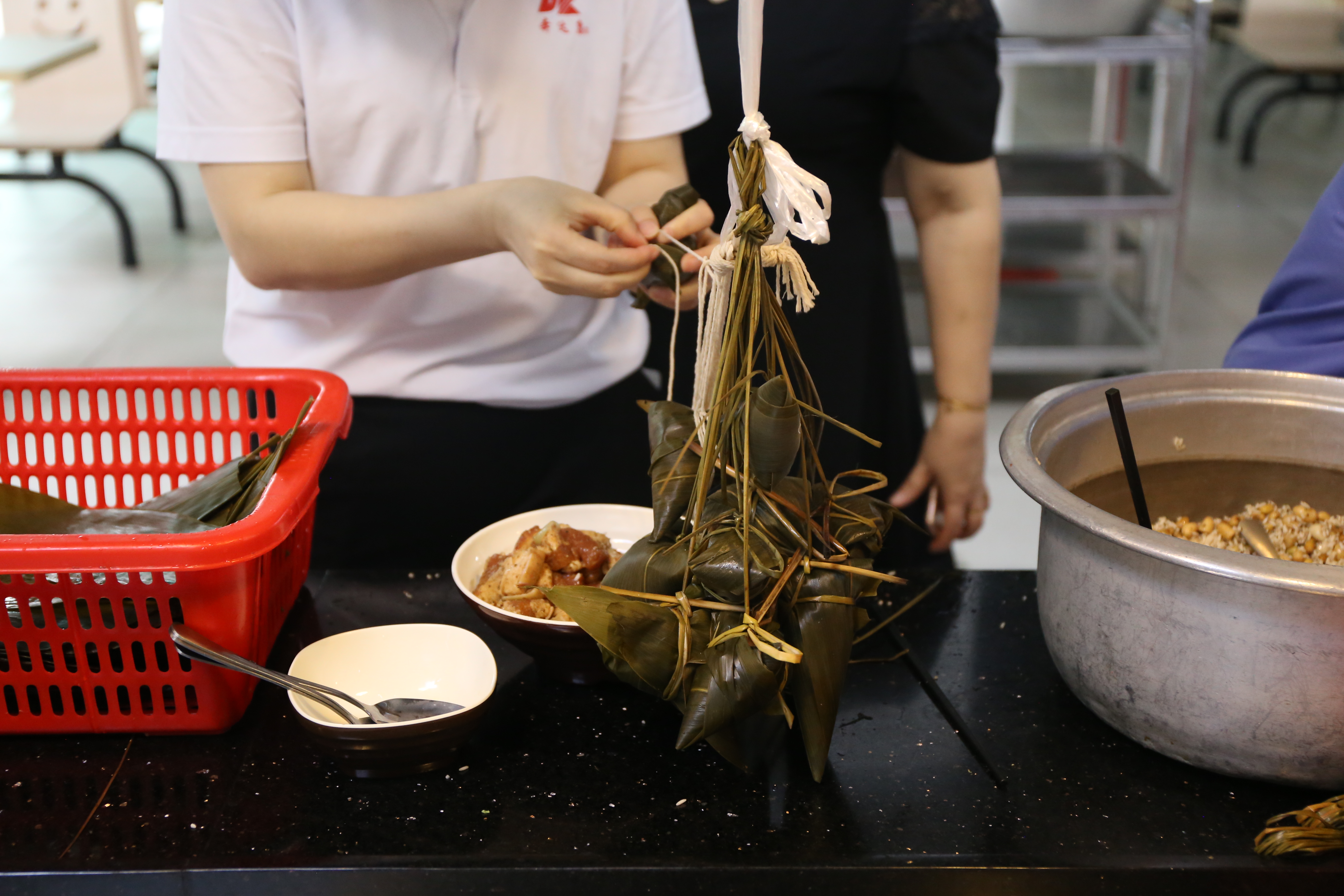 在饭堂一起包粽子