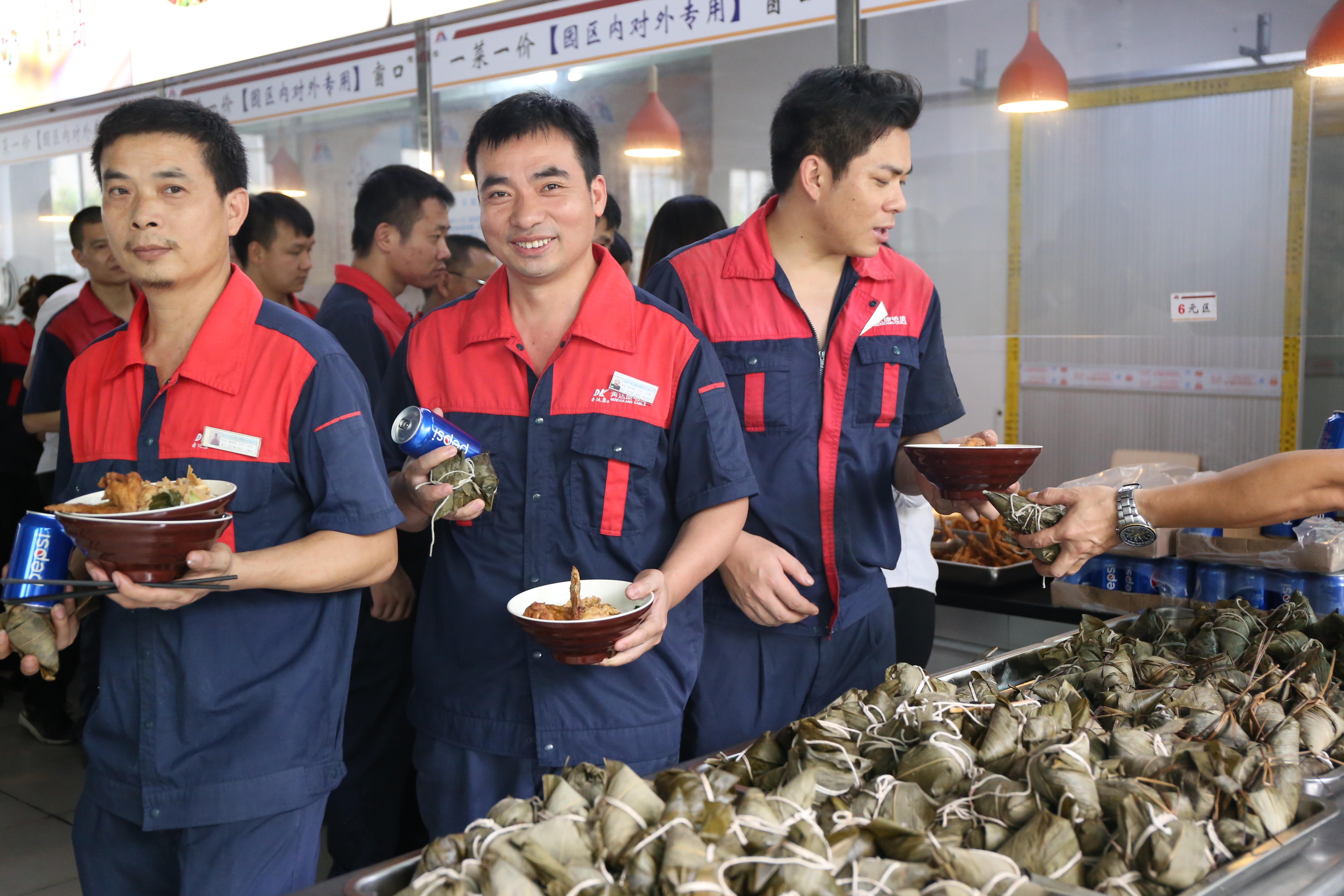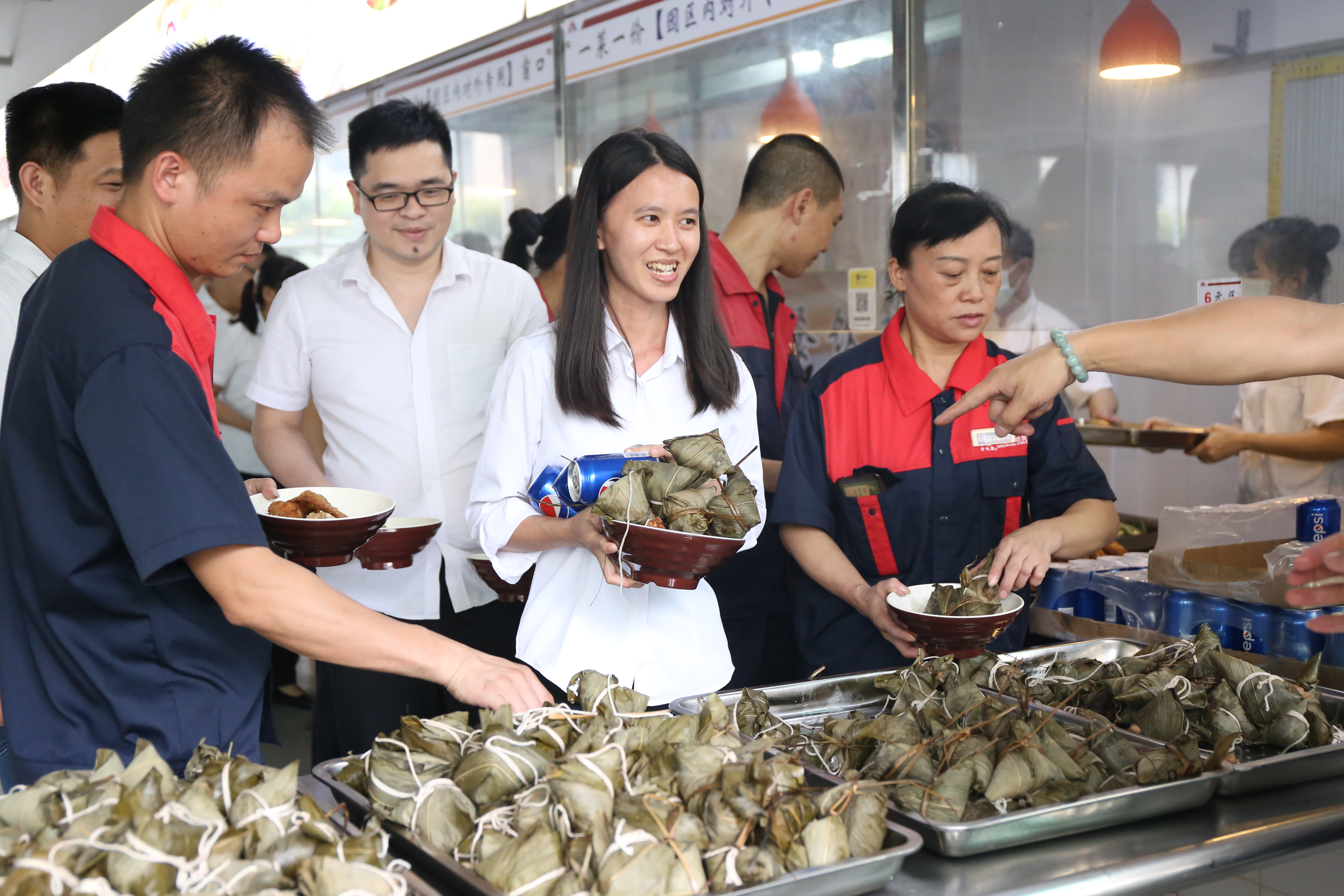 端午节除了发放的粽子外,饭堂还精心准备了饮料和特色美食为员工加餐。
