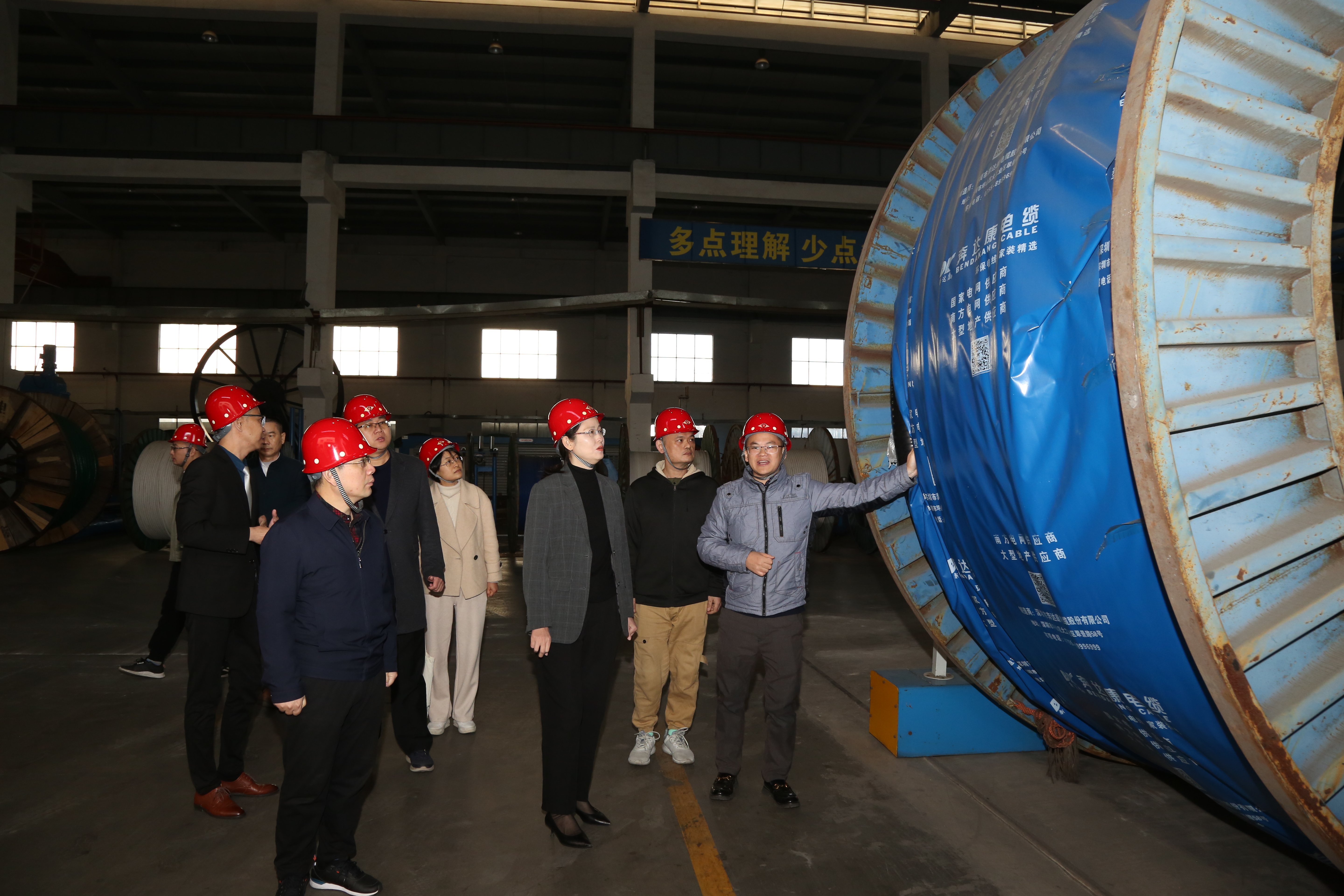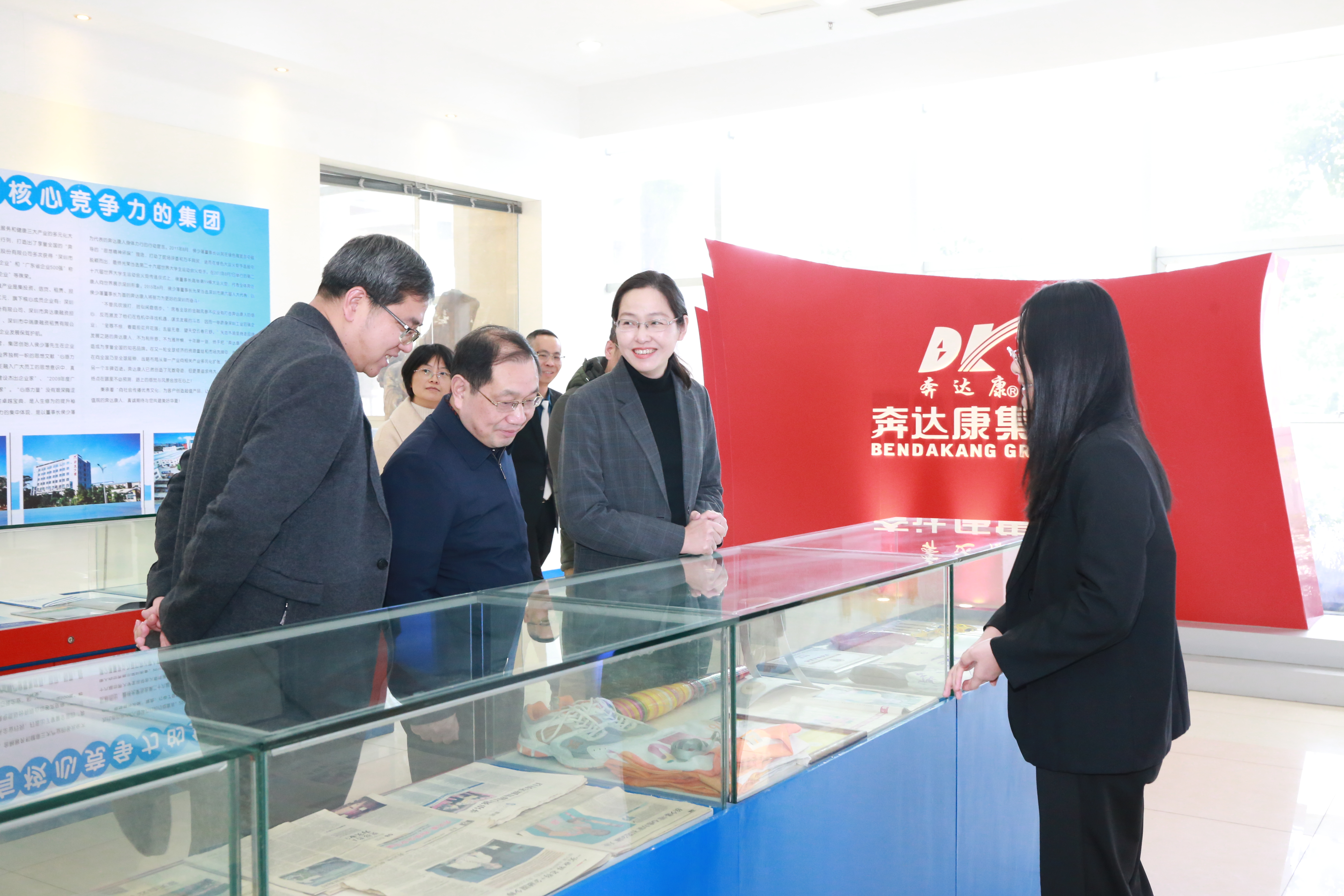 在集团领导的陪同下,甘雅芬副校长一行先后参观了“心感力量”文化墙、文化展厅、产品展厅、生产车间、检测大厅等,对奔达康集团的企业文化、产业架构、产品类型、实习生活动等加深了解。