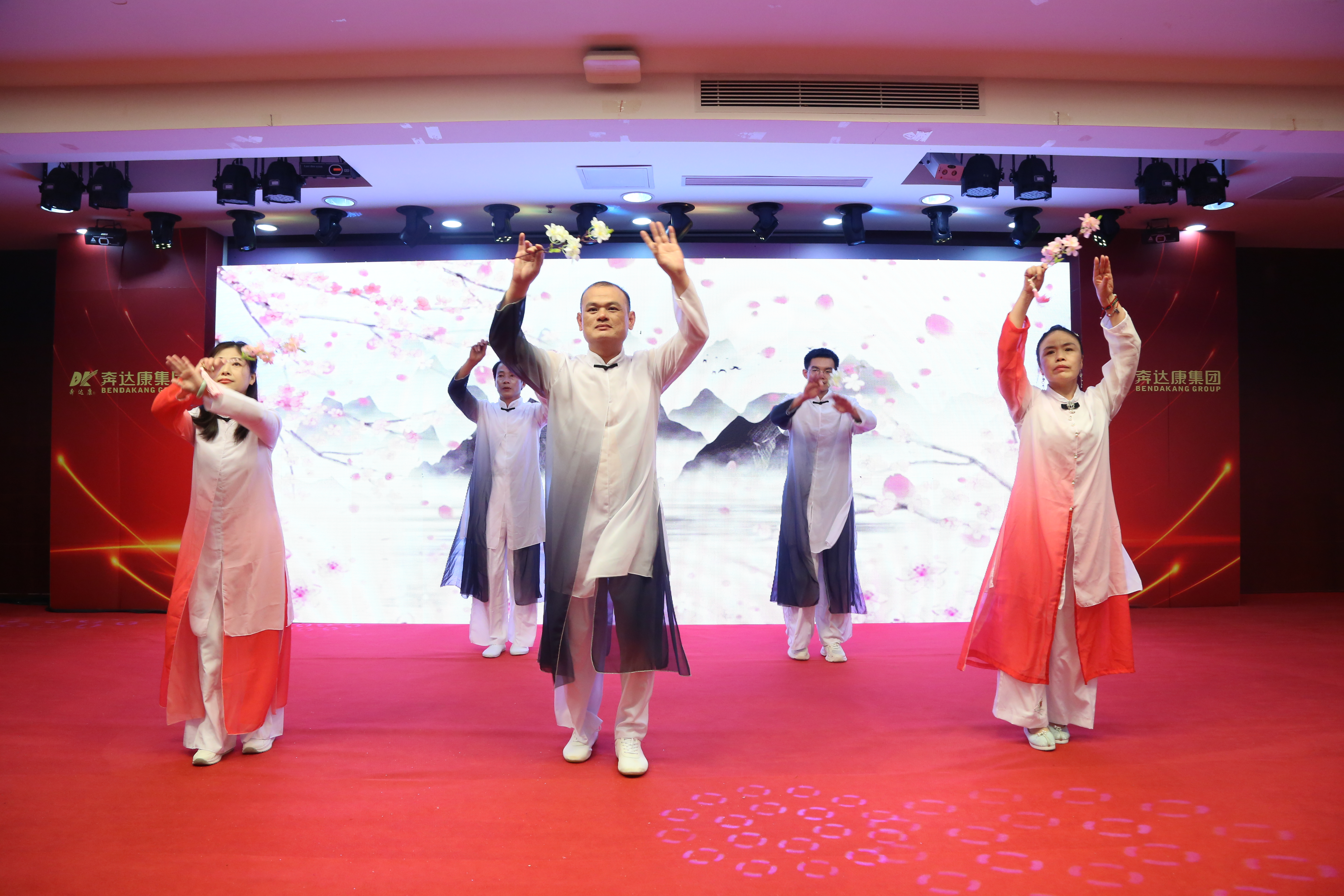 年会上,丰富多彩的节目与互动环节将气氛推向阵阵高潮。热情洋溢的尊巴舞《印巴风情》、铿锵有力、激荡人心的配乐诗朗诵《奔达四海,康惠天下》、柔美婉约的古风舞《杏花落》、轻松幽默的三句半说唱《这一年,咱们都挺“熬”》......