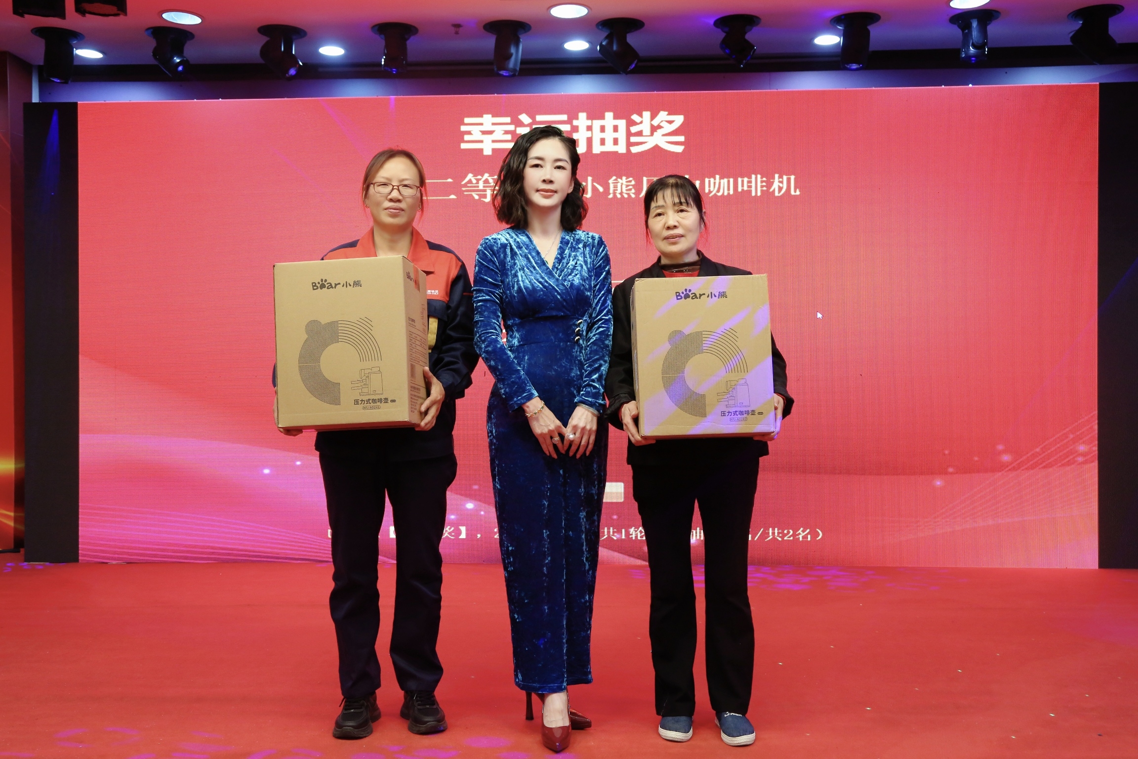 随后的抽奖环节更是惊喜连连,华为平板电脑、心感力量爱心杯、咖啡机、养生壶、吹风机等精美礼品一一送出,配合“红包雨”阵阵洒落,现场欢呼不断、笑声盈盈,洋溢着家一般的暖意与喜悦。